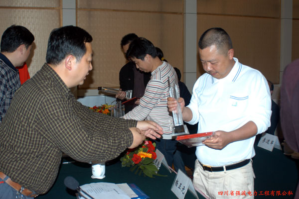 圖二:朱德元帥故居儀隴新政航電——新復(fù)線110KV線路工程獲得2007年度優(yōu)質(zhì)工程“果州杯”稱號(hào),領(lǐng)獎(jiǎng)現(xiàn)場(chǎng)