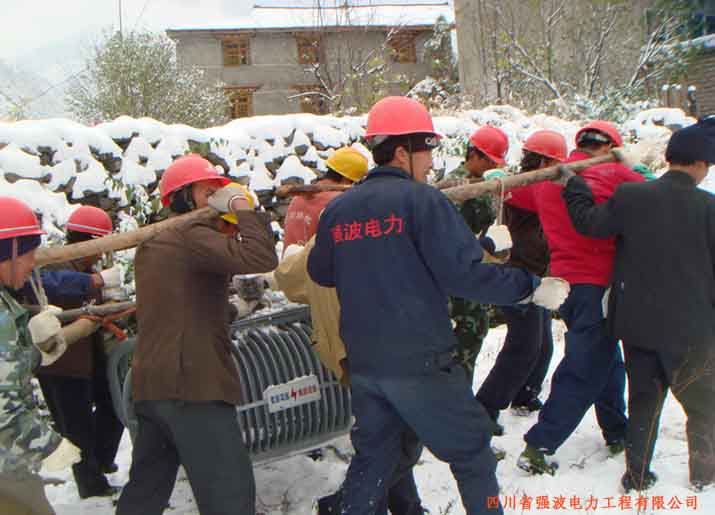 我公司在施工中認真貫徹上級的指示,嚴格做到安全、質(zhì)量、進度施工。在地處高原缺氧的條件下我施工隊人員臉上和嘴唇上都有不同程度的裂口。為了不拖延工程進度我公司施工人員依然堅守自己的崗位,每天午飯就是三個冷饅頭和一瓶礦泉水,看到這樣的場面,當(dāng)?shù)氐木用窠o我們端來了熱氣騰騰的酥油茶,頓時讓我們感覺到了藏族人民的溫暖。十一月中旬漫天飛舞的大雪給我們施工帶來了極大的困難。積雪深達25厘米,天氣轉(zhuǎn)冷至零下幾度。在這樣的情況下我公司的施工人員仍沒有退縮。迎著風(fēng)雪而上,貫徹著公司領(lǐng)導(dǎo)的指示,發(fā)揚強波精神。在雪停下的空隙加班加點的完成施工任務(wù)。就此經(jīng)過半個多月的奮戰(zhàn),于2009年11月19日圓滿的完成了黑水縣農(nóng)網(wǎng)改造工程,為無電區(qū)的藏族人民帶去了光明。